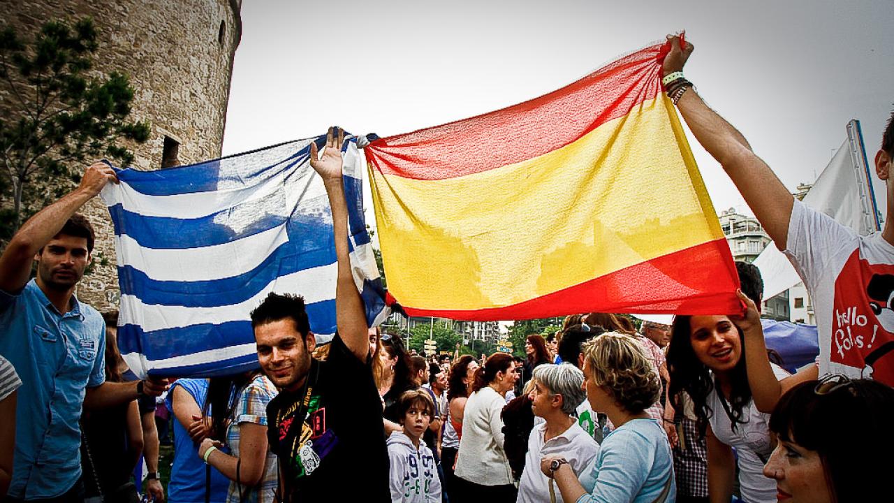 I Aten samlades på söndagen uppemot 100 000 demonstranter som sjöng och skrek slagord utanför parlamentet. De sägs vara inspirerade av de spanska protesterna men landets vice premiärminister Theodoros Pangalos avfärdade dem.