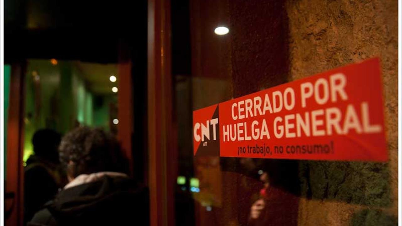Den 14 november var det generalstrejk i Spanien. I alla större städer var gator och torg fyllda med demonstrerande i alla åldrar. De tre största fackförbunden UGT (Arbetarunionen), CC.CC (Arbetarkommisionerna) och USO (Fackliga Arbetarunionen) ledde protesterna, men både universitetsstuderande, skådespelare och en lång rad folkliga organisationer lät sin vrede höras i hela landet.