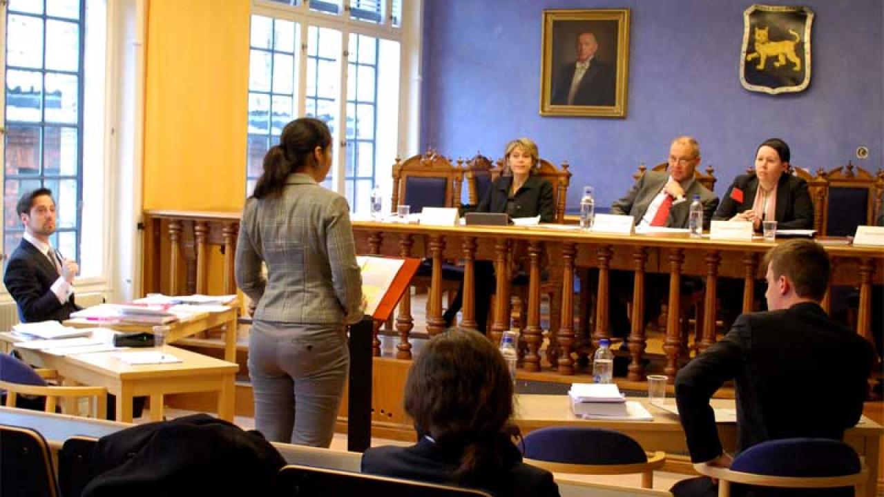 I lördags avkunnade så ”EU-domstolen” dom i förenade målen M-312/12 och M-365/12. Det var till slut Leiden University som tog hem segern efter två dagar fyllda med glädje, svett och tårar. Juridiska Fakulteten i Lund stod för första gången värd för en av delfinalerna i den årliga European Law Moot Court Competition. Efter att cirka 100 lag från olika universitet från hela världen skickat in sina skrivna inlagor på årets fiktiva fall gick 48 lag vidare till de fyra delfinalerna som i år hålls i Leiden, Lund, Neuchâtel och Bryssel. Till Lund kom bland annat College of Europe, Leiden, Columbia Law School och Luzern University.